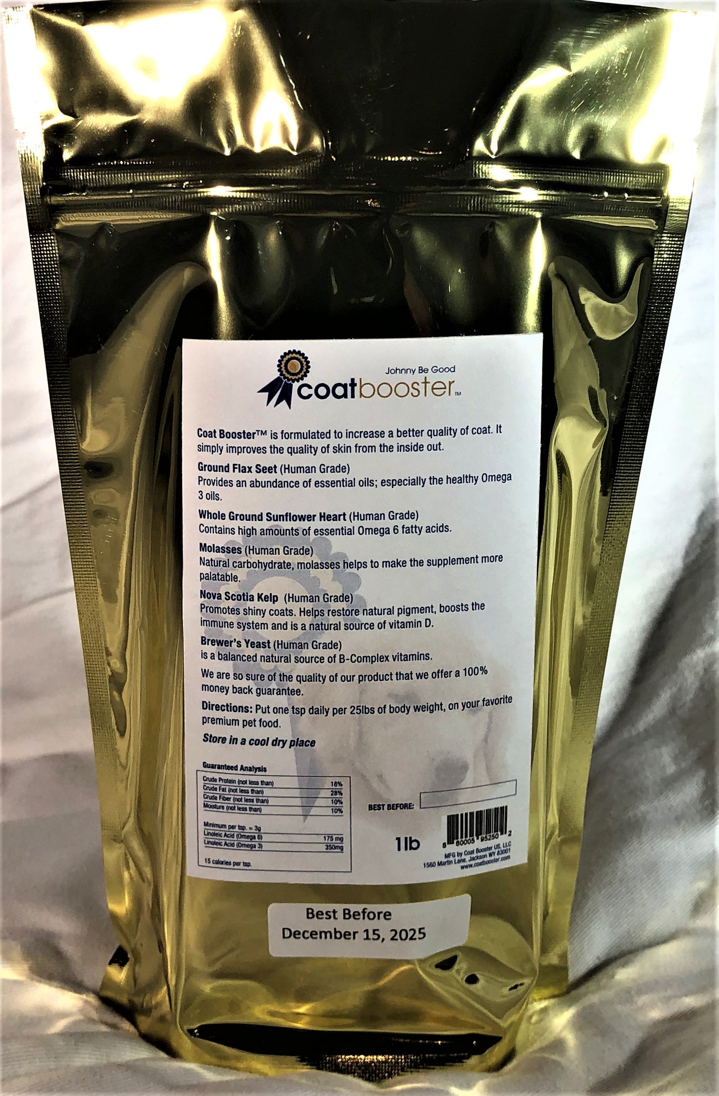 High in Omega 3, 6, and 9 Fatty Acids, Coat Booster is formulated to improve the quality of skin from the inside out. Made in small batches to insure quality, Coat Booster is mixed and bagged within one hour, and sealed in a foil bag to avoid contact with both air and sunlight. We are so sure of the quality of our product, we offer a 100% money back guarantee!