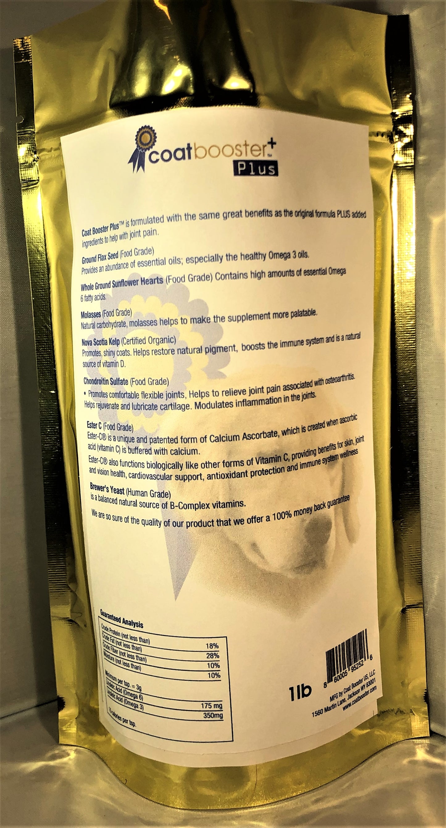 High in Omega 3, 6, and 9 Fatty Acids, Coat Booster is formulated to improve the quality of skin from the inside out. Made in small batches to insure quality, Coat Booster is mixed and bagged within one hour, and sealed in a foil bag to avoid contact with both air and sunlight. We are so sure of the quality of our product, we offer a 100% money back guarantee!