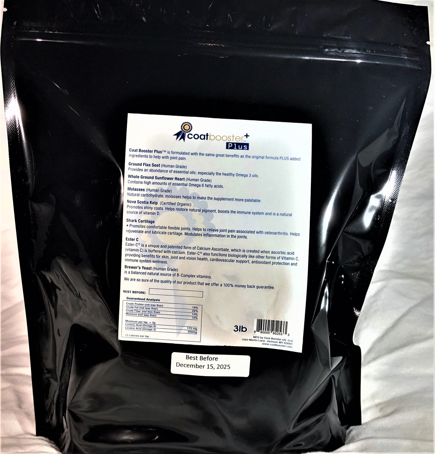 High in Omega 3, 6, and 9 Fatty Acids, Coat Booster is formulated to improve the quality of skin from the inside out. Made in small batches to insure quality, Coat Booster is mixed and bagged within one hour, and sealed in a foil bag to avoid contact with both air and sunlight. We are so sure of the quality of our product, we offer a 100% money back guarantee!